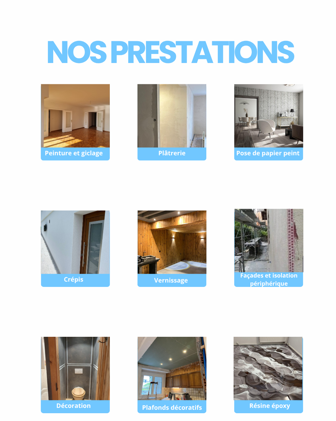 Que ce soit pour des travaux de peinture, de plâtrerie, ou encore la pose de papier peint, nous mettons notre expertise à votre service. Nos solutions personnalisées, comme les crépis, le vernissage, ou les plafonds décoratifs, sont conçues pour répondre à toutes vos attentes. Faites confiance à notre savoir-faire pour sublimer vos espaces.